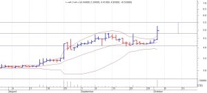 اغلق سهم ايه كابيتال القابضة عند مستوى 4.95 جنيها بعد ان اخترق مستوى المقاومة الهام عند 4.8 جنيه لنموذج المستطيل نتوقع استمرار الصعود الى مستوى 5.5 ثم 6 جنيه على الترتيب لذلك ننصح بالشراء بين 4.7 و 4.9 ومستوى 4.7 هو مستوى وقف الخسارة في حال اختراقه لاسفل.