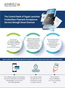 أعلن البنك المركزي المصري عن إطلاق خدمة قبول المدفوعات الإلكترونية اللاتلامسية عبر الأجهزة الذكية (الموبايل / التابلت) باستخدام تطبيقات Soft POS، وذلك في إطار إستراتيجية التحول نحو مجتمع أقل اعتمادًا على النقد وتعزيز الشمول المالي، وتحقيق رؤية مصر 2030.