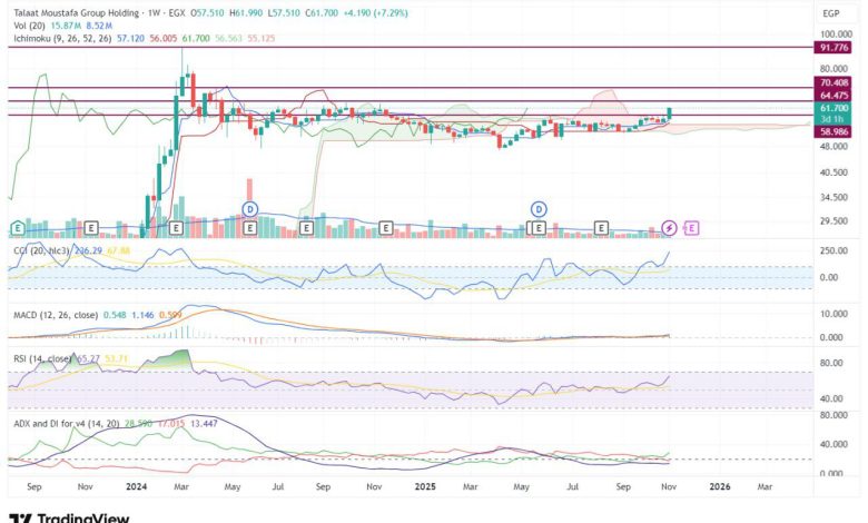 البنوك دوت كوم : كشفت “نهاد علي” مدير التسويق و البيع في شركه “عربيه اون لاين”، لتداول الأوراق المالية، فى تحليلها الفني لآداء سهم “مجموعة طلعت مصطفى القابضة”، عن أن سهم “طلعت مصطفى القابضة ” (TMGH)، أحد الأوزان الثقيلة في البورصة المصرية، يشهد مرحلة حرجة من الناحية الفنية، بينما تدعم نتائجه الأساسية القوية بشكل غير مسبوق احتمالية انطلاقته الكبرى نحو…